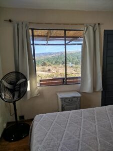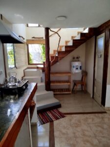 Cabaña de dos pisos, con capacidad para hasta 4 personas, ideal para disfrutar de la tranquilidad del entorno serrano.